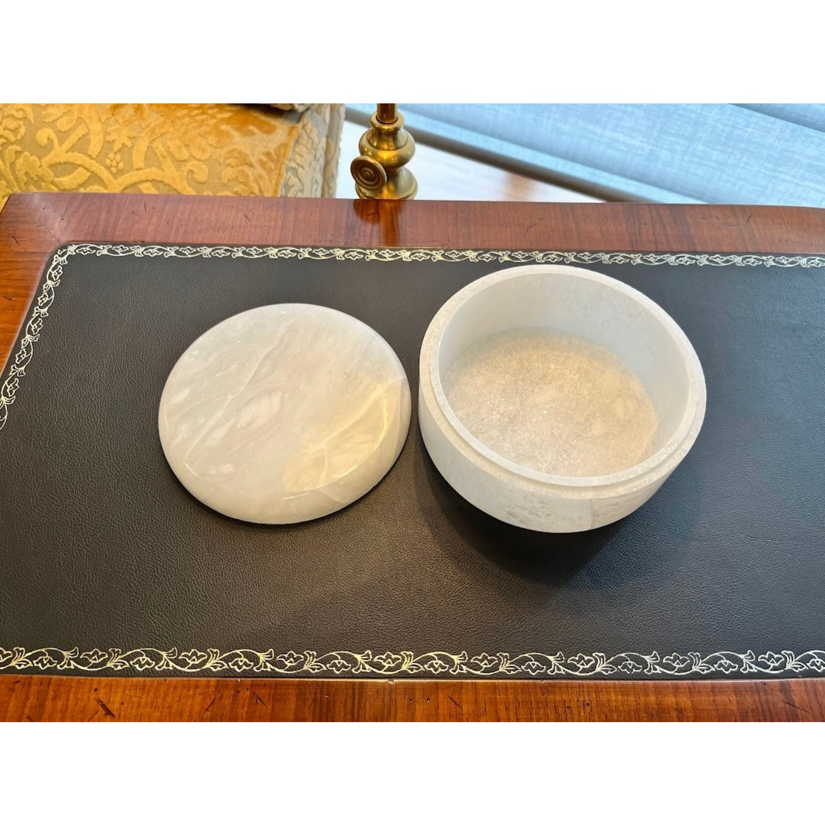A luminous, handcrafted accent piece designed to hold trinkets or serve as a decorative element in your home. Made from natural alabaster stone, each box is unique due to the variations in the stone's color and veining.