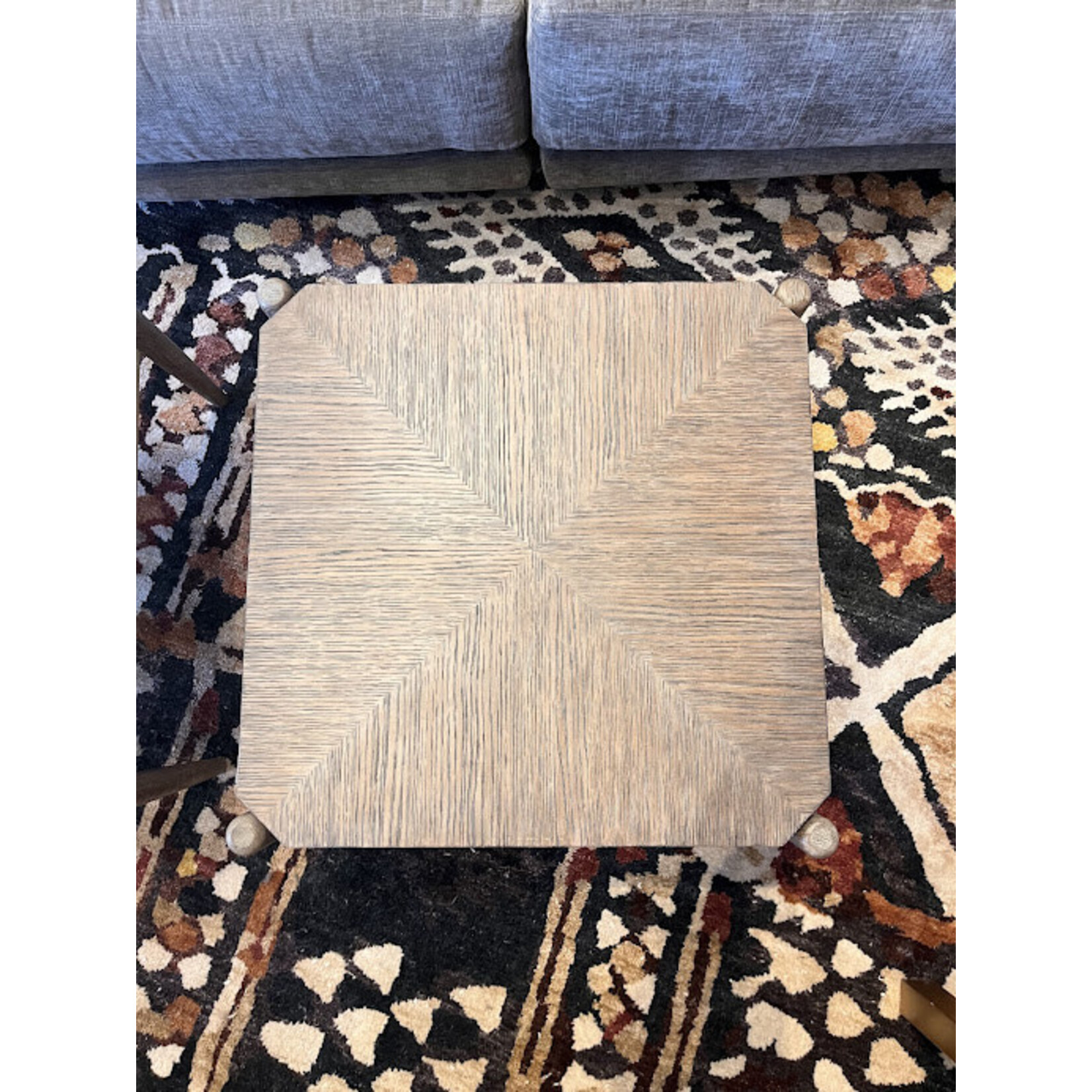 The Visby Light Pepper Ottoman is made of solid oak in a light pepper finish with a linear brass accent in a brushed brass finish. The mid-century lines are enhanced by the rough ceruse treatment on the wood.