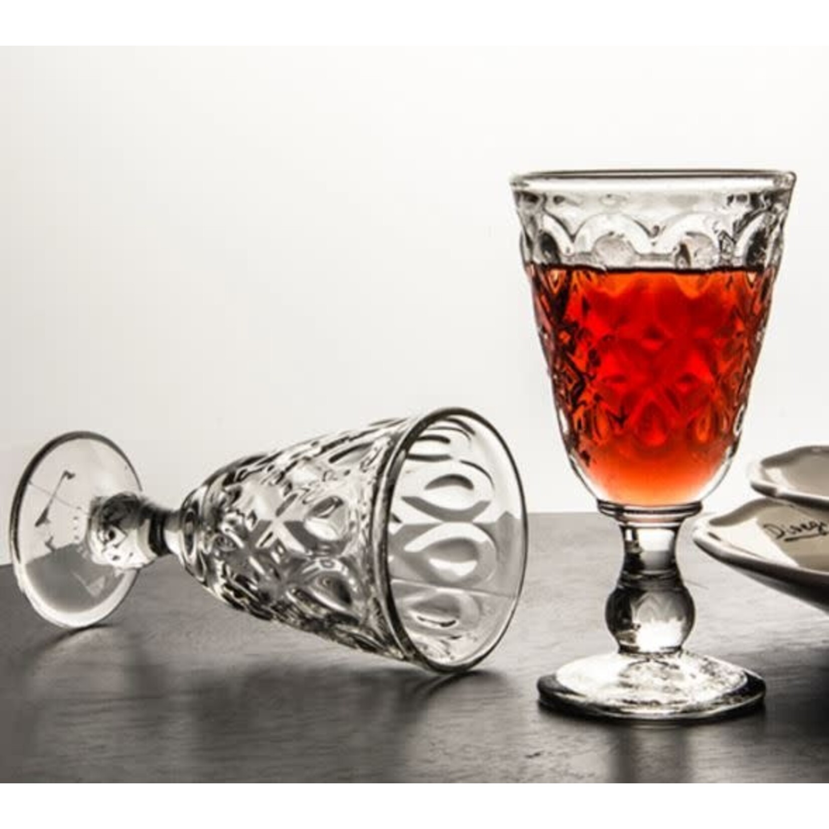The wine glass by Le Rochere has an old-fashioned design with a beautiful, raised pattern perfect to create a harmonious and elegant table setting. It is made of pressed glass with a decorative foot.