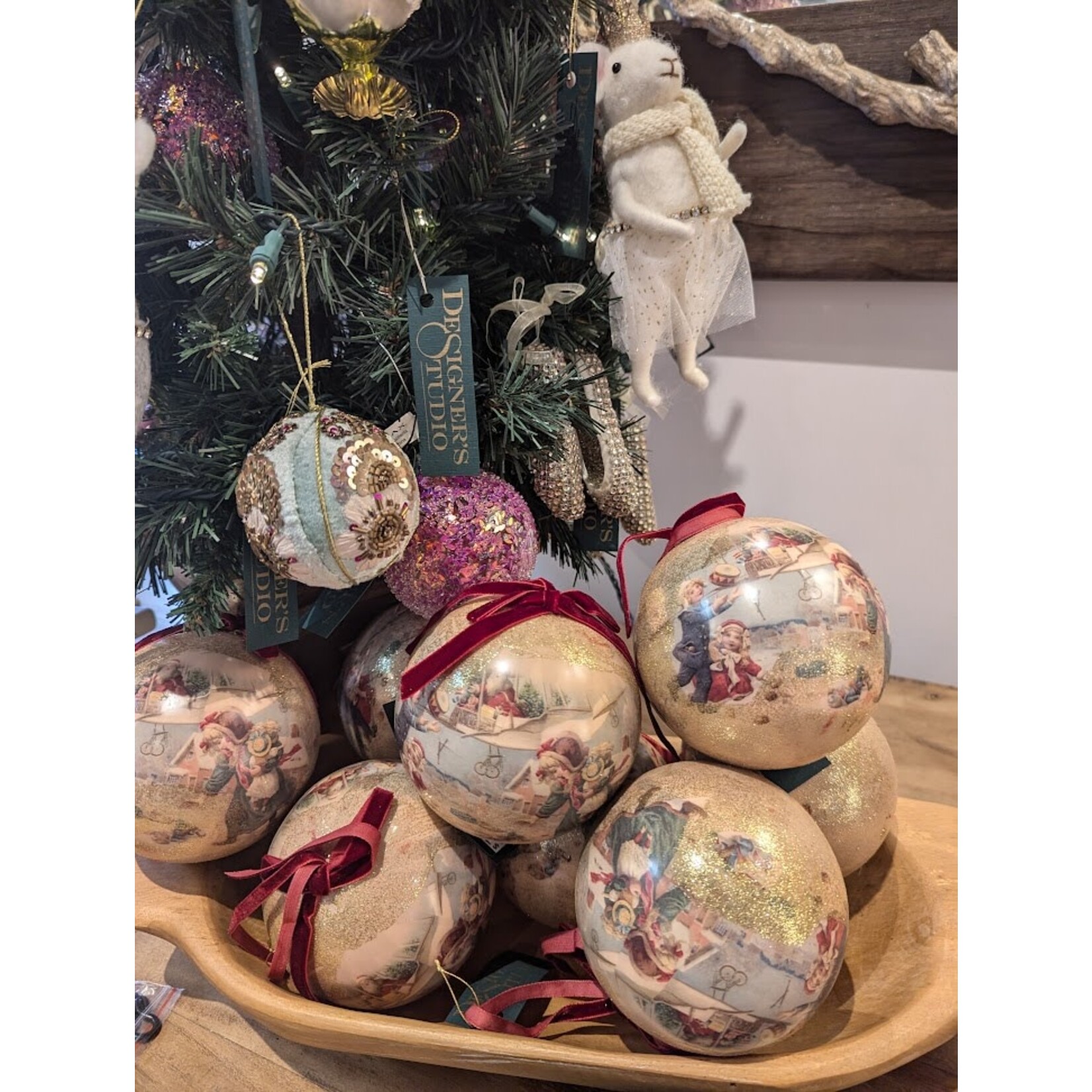 Shishi LLC Velvet Ball Ornament Mint Floral