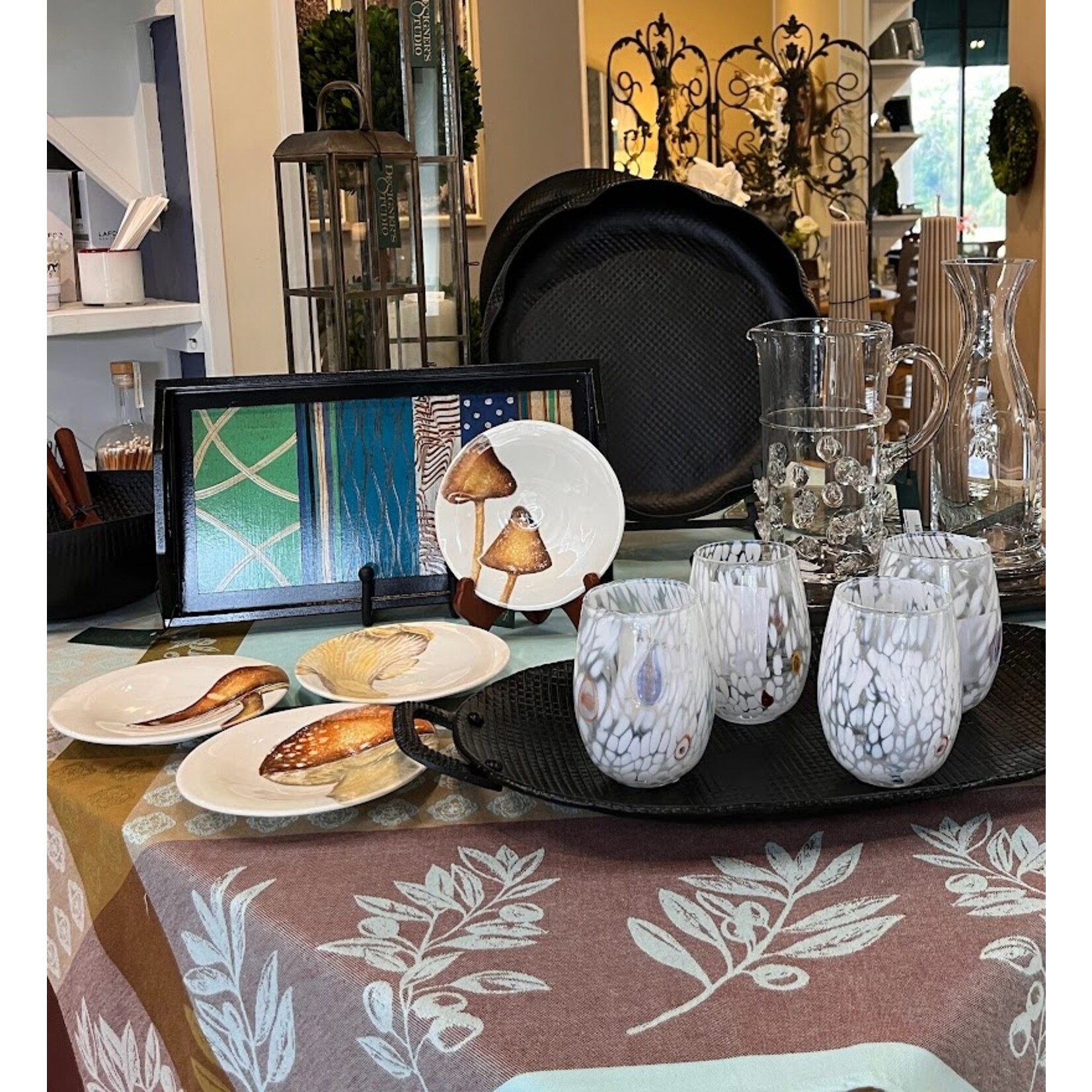 The unique shapes and warm colors of the Autunno Assorted Mushroom Canape Plates evoke the wonder of Italy in the fall. Each piece is handsponged, and the effect is a rich, crisp, and elegantly autumnal scene.