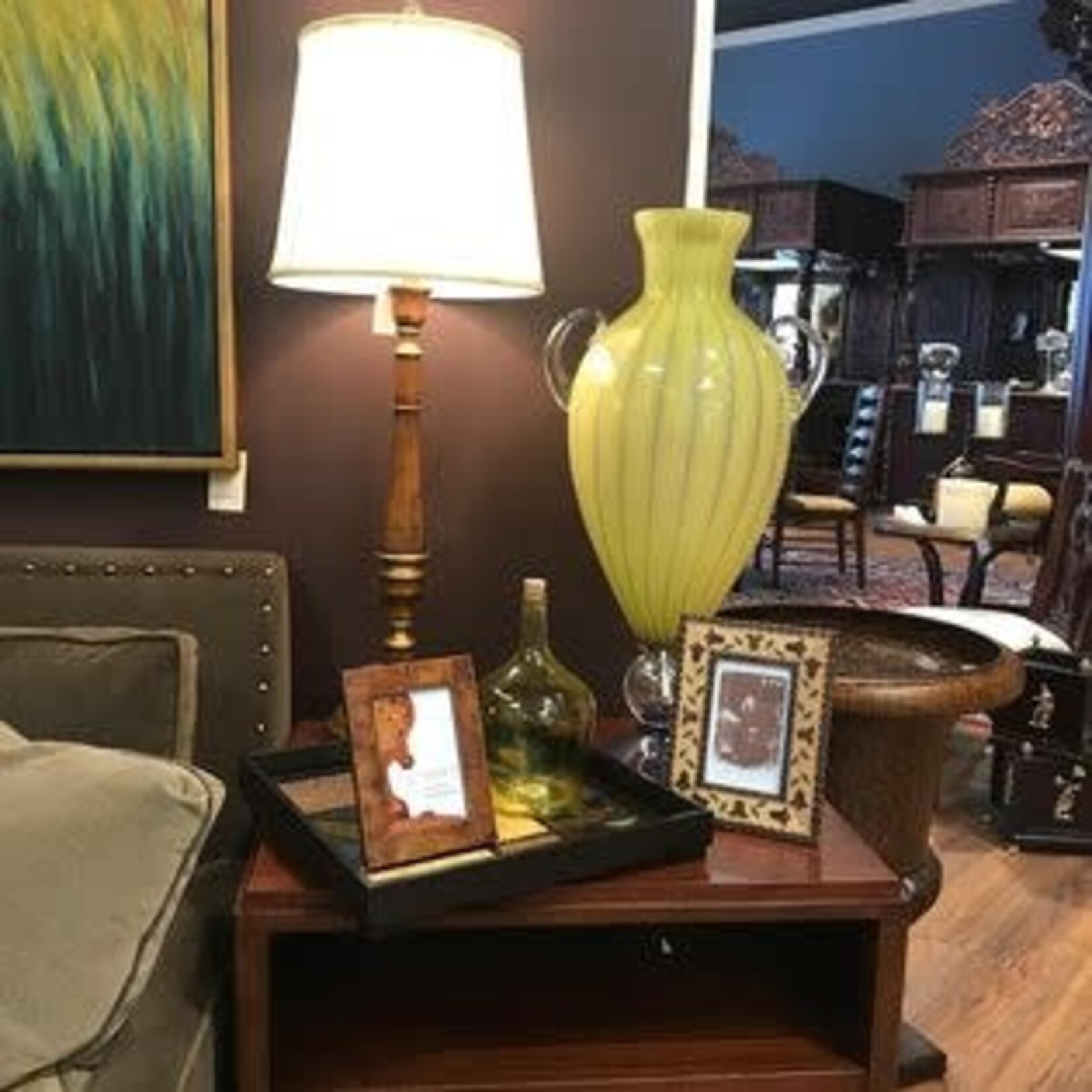 Elevate your interior with the Wildwood Margarita Donato Urn Vase, a striking fusion of artistry and elegance. Measuring 28.5" x 16", this handblown masterpiece showcases a bold chartreuse body accented with rich purple detailing, creating a vibrant interplay of color and form. Its classic urn silhouette is reimagined with modern flair, making it a captivating focal point for any refined space. Whether styled solo or filled with lush botanicals, this sculptural vase brings a gallery-worthy presence to consoles, mantels, or entryways. A true statement piece for collectors of exceptional design.